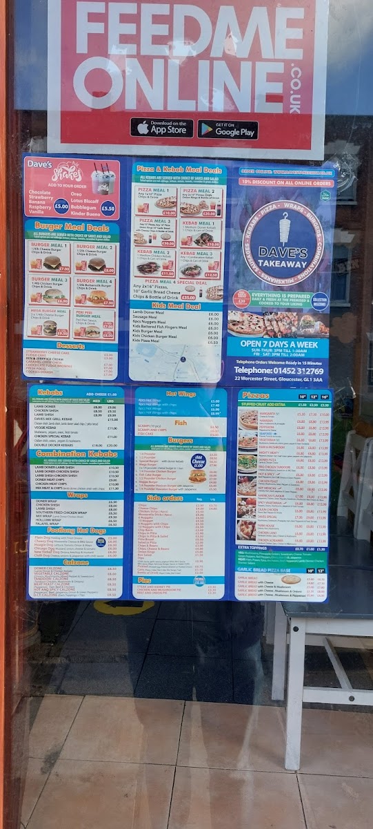 Welcome to Dave's Takeaway, a hidden gem in Gloucester, where flavor meets convenience. Located at 22 Worcester St, this takeout spot is renowned for its diverse burger selection, from the classic 1/4 Pounder Burger (£4.99) to the towering Mega Burger (£7.99), perfect for those with big appetites. But it doesn't stop there; their menu boasts delicious sides like crispy Chicken Strips and indulgent Mozzarella Sticks, ensuring there's something for everyone.